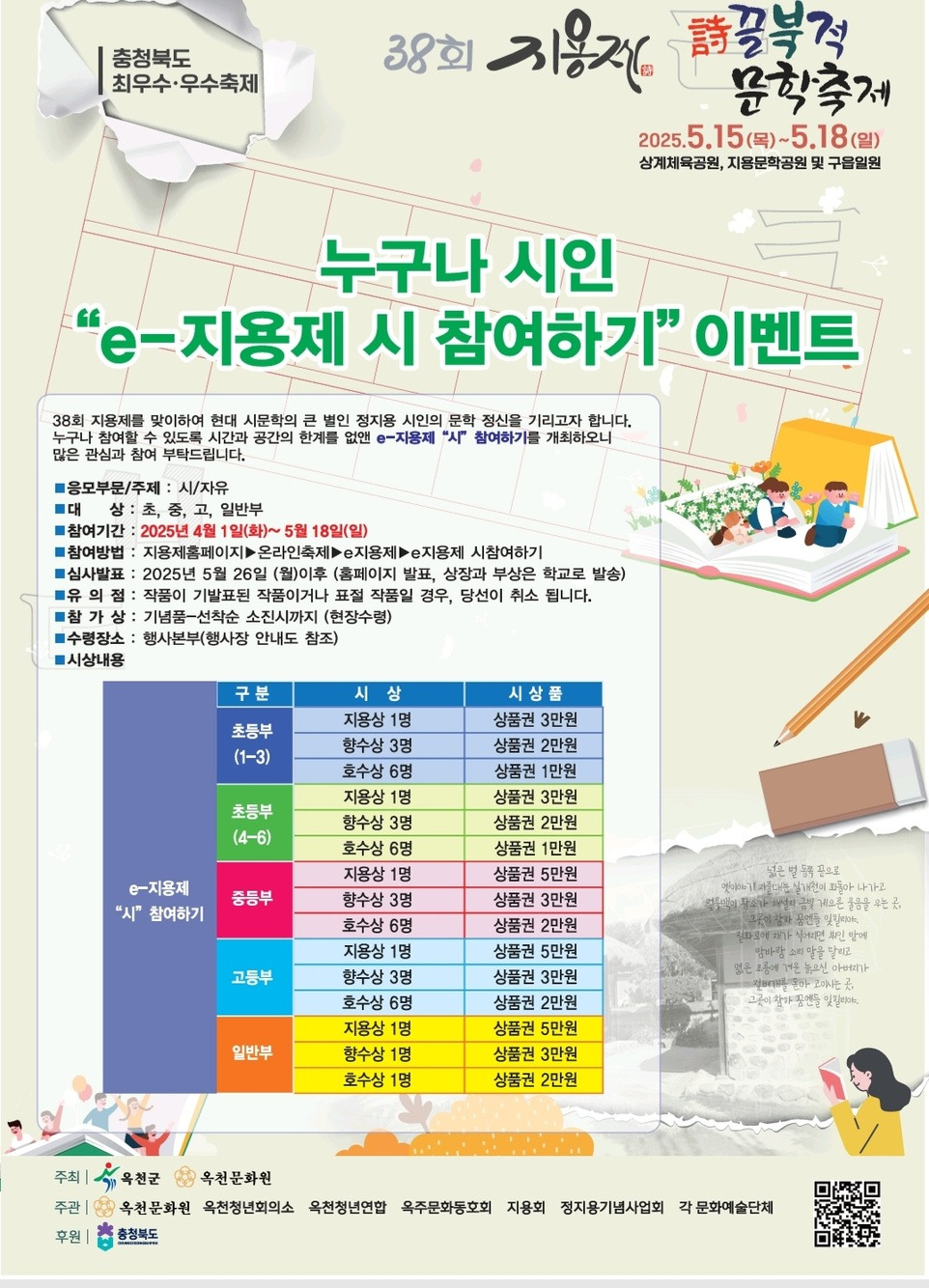 한국 현대시의 아버지 정지용 시인을 기리는 제38회 지용제가 올해도 충북 옥천에서 열립니다. 2025년 5월 15일부터 18일까지 4일간 진행되는 이 축제는 문학 애호가뿐만 아니라가족 단위 나들이에도 안성맞춤인 전국 대표 문학 축제입니다.2025 지용제란? 정지용의 문학과 향수를 느끼는 축제지용제는 '향수'로 잘 알려진 정지용 시인의 문학정신을 기리며, 매년 5월 그의 고향인 충청북도 옥천에서 열립니다. 문학상 시상식, 시낭송, 백일장 등 다양한 문학행사는 물론, 퍼포먼스, 콘서트, 어린이 체험까지 전 세대가 함께 즐길 수 있는 행사로 구성되어 있어요.📍 한국 현대시의 숨결을 직접 느끼고 싶은 분이라면 올해 지용제는 꼭 방문해보세요!📚 지용제 공식 홈페이지 바로가기 2025 지용제 일정과 장소 정보구..