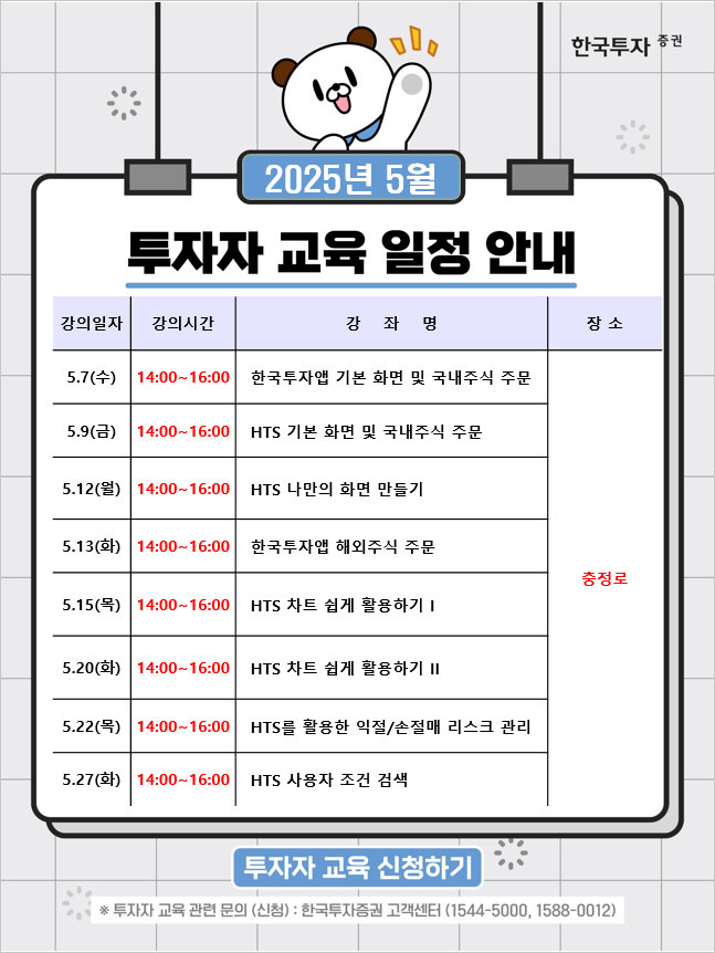 📅 2025년 5월 투자자 교육 일정 총정리! 한국투자증권에서 제대로 배워보세요